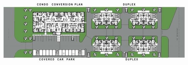 It was also determined there was extra space on the office complex plot to construct an additional eight duplex townhomes. These high-end properties are a major added value to our client’s portfolio.